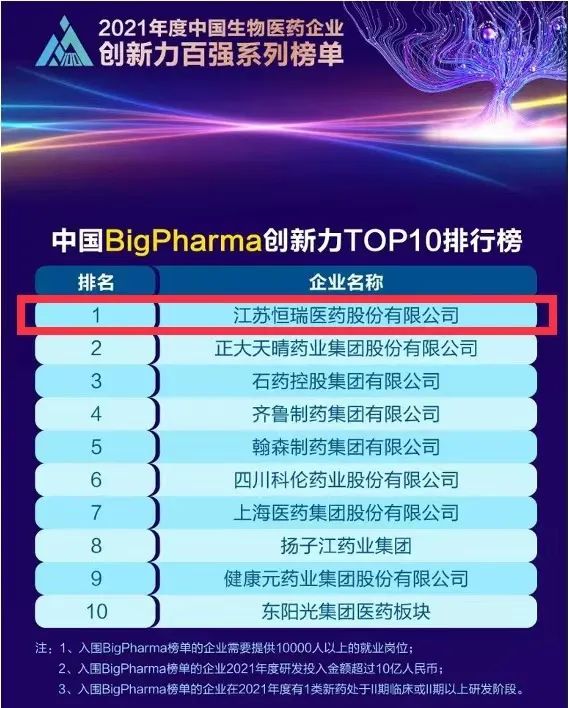 蝉联榜首!九游会(J9)医药再次登顶“中国BigPharma企业创新力TOP10排行榜”