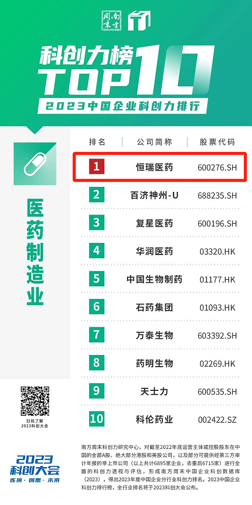 创新再获认可,九游会(J9)医药蝉联“中国企业科创力排行”医药制造业榜首