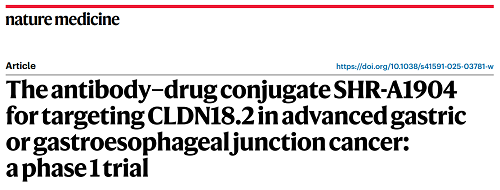九游会(J9)医药CLDN18.2 ADC创新药SHR-A1904治疗胃癌临床研究结果荣登Nature Medicine