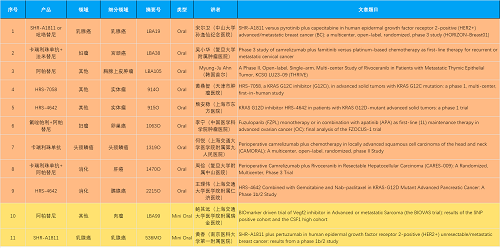 15款创新药包括10款已上市产品:注射用瑞康曲妥珠单抗(艾维达®,研发代号:SHR-A1811)、注射用卡瑞利珠单抗(艾瑞卡®)、苹果酸法米替尼胶囊(艾比特®)、甲磺酸阿帕替尼片(艾坦®)、马来酸吡咯替尼片(艾瑞妮®)、阿得贝利单抗注射液(艾瑞利®)、羟乙磺酸达尔西利片(艾瑞康®)、氟唑帕利胶囊(艾瑞颐®)、瑞维鲁胺片(艾瑞恩®)、海曲泊帕乙醇胺片(恒曲®),以及5款未上市产品,包括KRASG12C抑制剂HRS-7058、KRASG12D抑制剂HRS-4642、选择性的AR-PROTAC(雄激素受体-蛋白降解靶向嵌合体)小分子HRS-5041、抗PD-L1/TGF-βRII双抗瑞拉芙普-α注射液(SHR-1701)、Trop-2 ADC SHR-A1921。2类新药盐酸伊立替康脂质体注射液(II)(越优力®)及国内首仿药昂丹司琼口溶膜(艾其速®)各有1项研究入选。本文特对研究成果做了梳理,带领各位读者领略九游会(J9)医药创新之光。